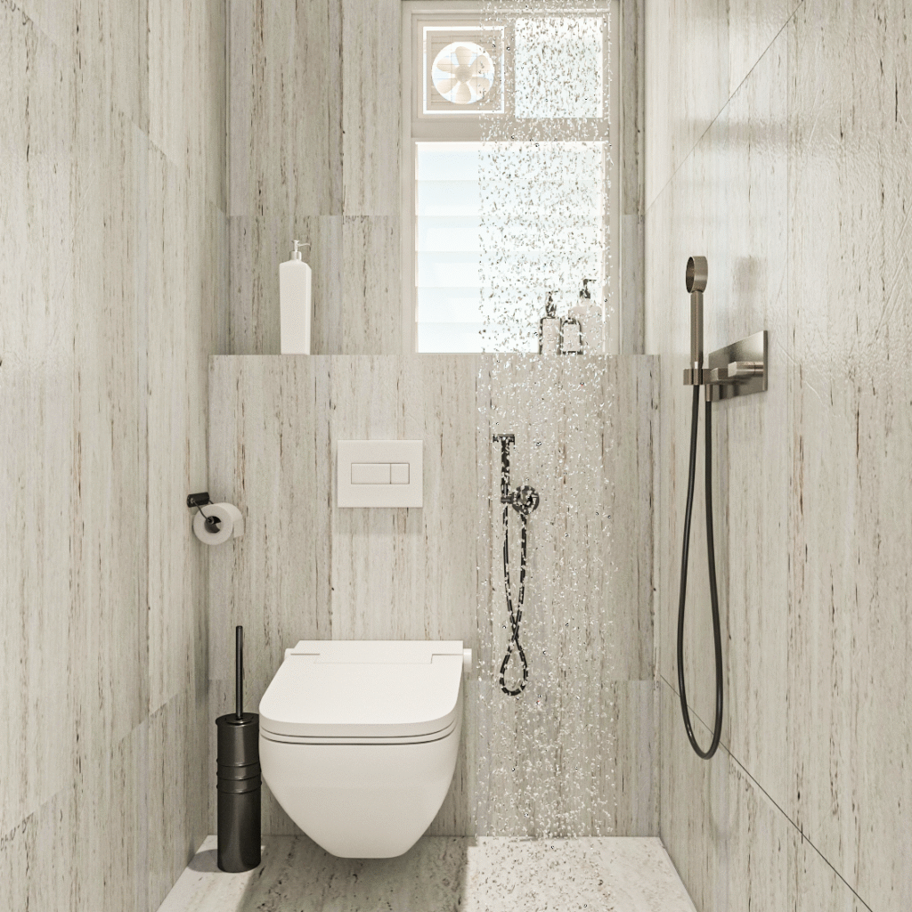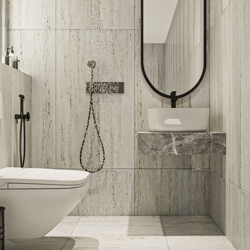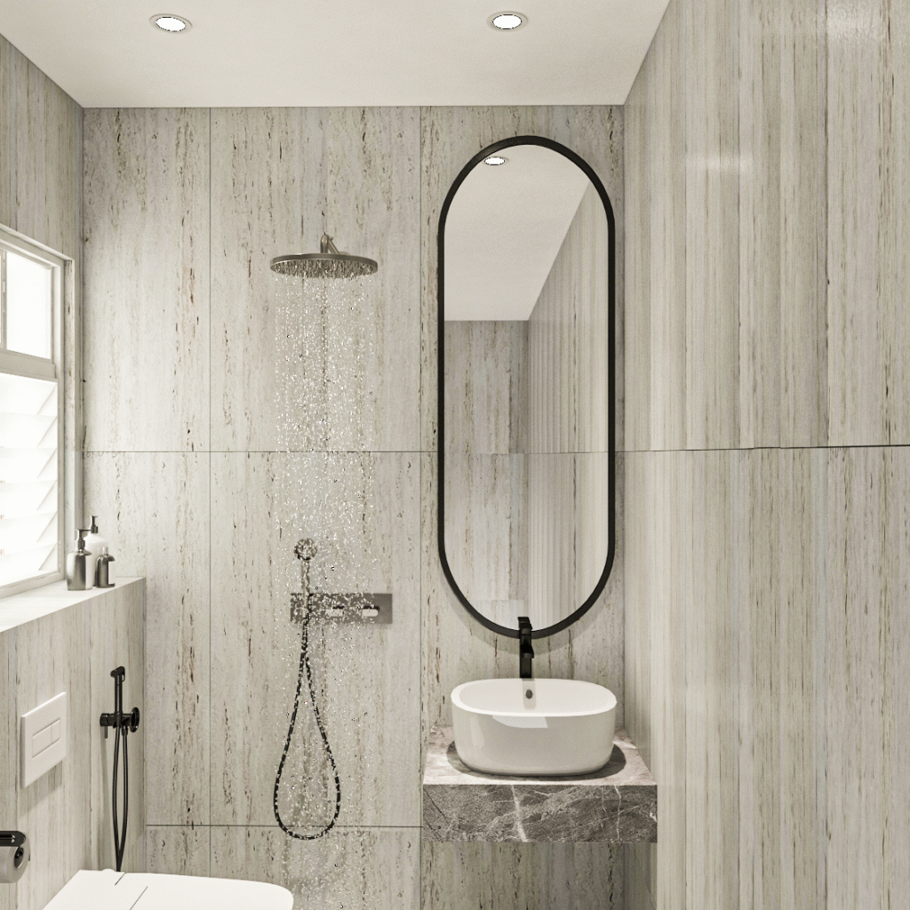 This bathroom offers everyday functionality with an elevated look. Neutral surfaces and warm lighting come together to create a comfortable and inviting experience. The clean lines and thoughtful layout maximize usability while maintaining a modern, stylish character.
